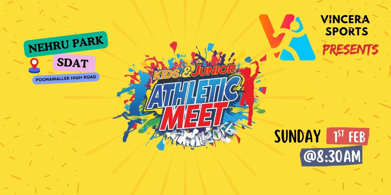 Kids & Junior Athletic Meet Presented by Vincera Sports on 1st Feb. Sun at Nehru Park SDAT, Chennai!!!