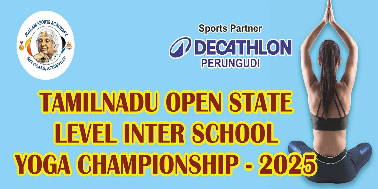 Tamilnadu Open State Level Grand Yoga Competition Dec 2025 organised by Kalam Event Management on 28th Dec 2025 at Decathlon, Nolambur.