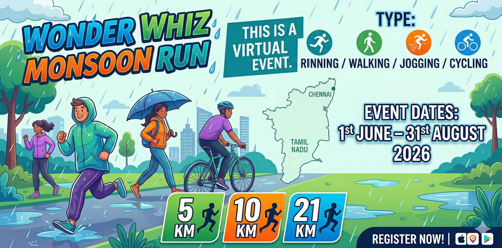 Get ready to stay active this monsoon with the Wonder Whiz Monsoon Run, a fun and flexible virtual fitness challenge open to all age groups!